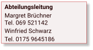 Abteilungsleitung Margret BrüchnerTel. 069 521142 Winfried Schwarz Tel. 0175 9645186